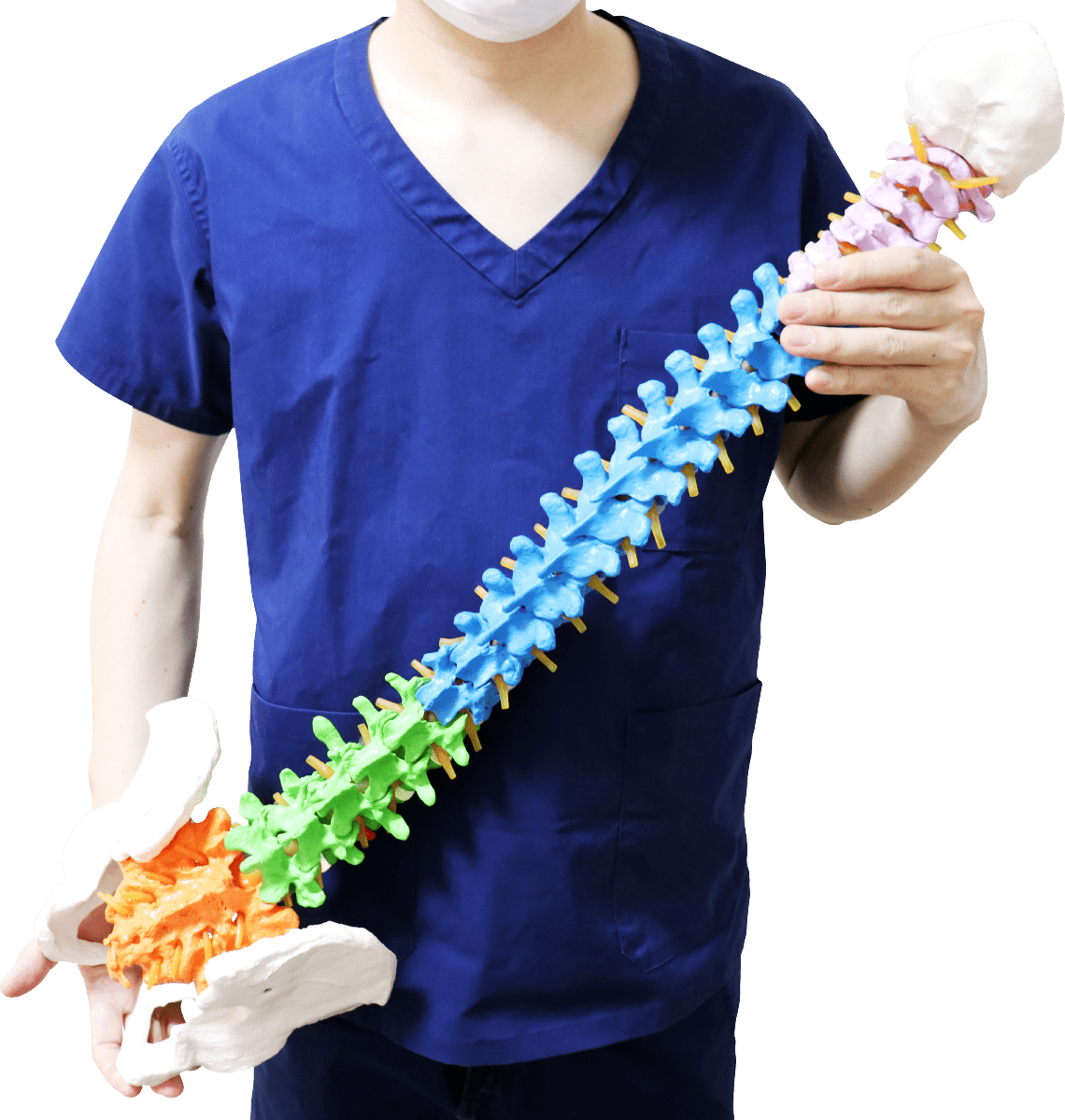 頚椎/胸椎/腰椎/仙椎を色分けしたフレキシブルカラー脊椎模型です。